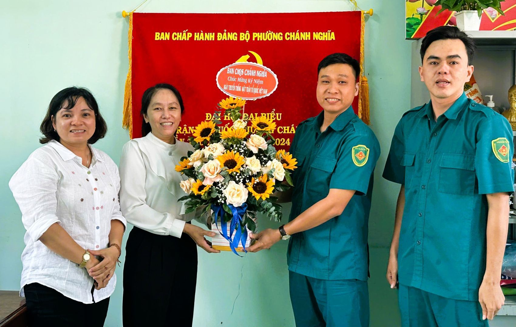 Nhân dịp này, Ban CHQS phường gửi lời chúc mừng tốt đẹp nhất đến các đồng chí trong Ban Thường trực UB MTTQ Việt Nam phường và mong rằng tiếp tục được phối hợp thực hiện tốt các hoạt động phong trào của địa phương, phát huy vai trò tuyên truyền động viên các tầng lớp nhân dân thực hiện nghiêm túc, hiệu quả các chủ trương, đường lối của Đảng, chính sách, pháp luật của Nhà nước. Qua đó, góp phần hoàn thành tốt nhiệm vụ phát triển kinh tế - xã hội, giữ vững quốc phòng - an ninh trên địa bàn phường.