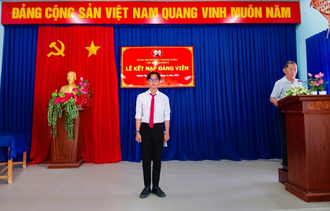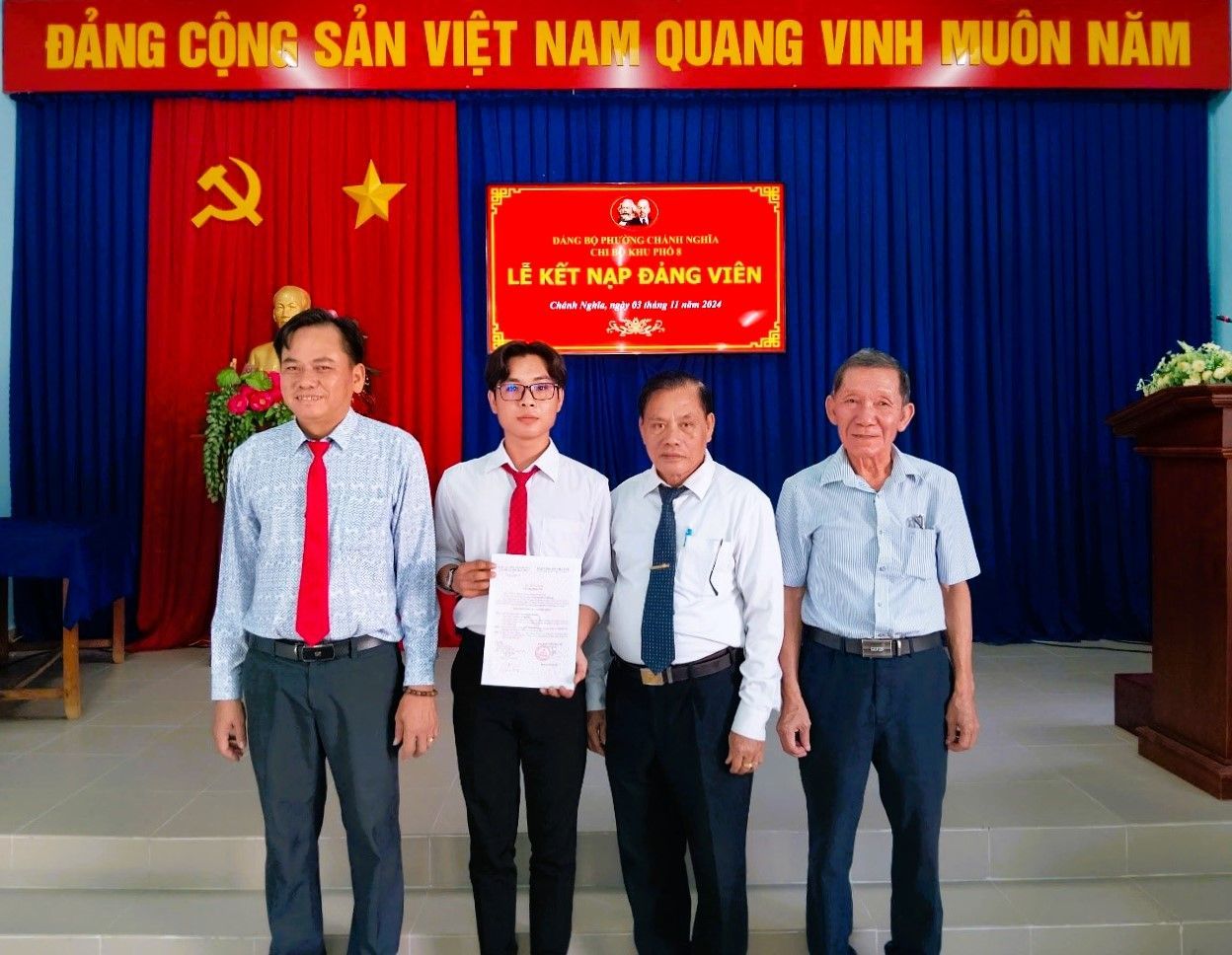 Sáng ngày 03/11/2024, Chi bộ khu phố 8, phường Chánh Nghĩa tổ chức Lễ kết nạp Đảng viên mới cho quần chúng ưu tú Nguyễn Vũ Hoàng. Đến tham dự Lễ kết nạp Đảng viên mới có đồng chí Lý Văn Minh, Phó Bí thư Thường trực Đảng ủy; đồng chí Đỗ Minh Quang, Bí thư Chi bộ, cùng các đồng chí Đảng viên trong chi bộ.