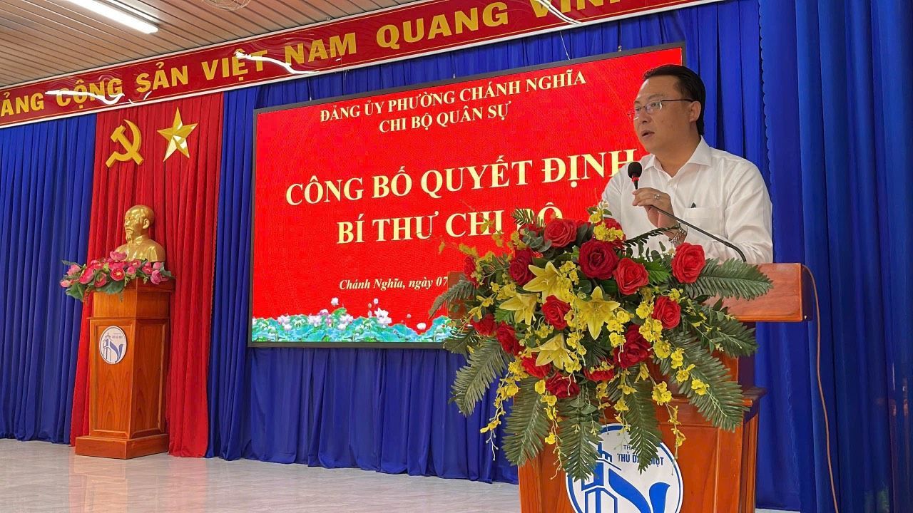 Tại Hội nghị, đồng chí Lý Văn Minh - Phó BTTT Đảng uỷ gửi lời chúc mừng và trao Quyết định chỉ định Bí thư Chi bộ Quân sự; tham dự Lễ kết nạp Đảng viên mới.
