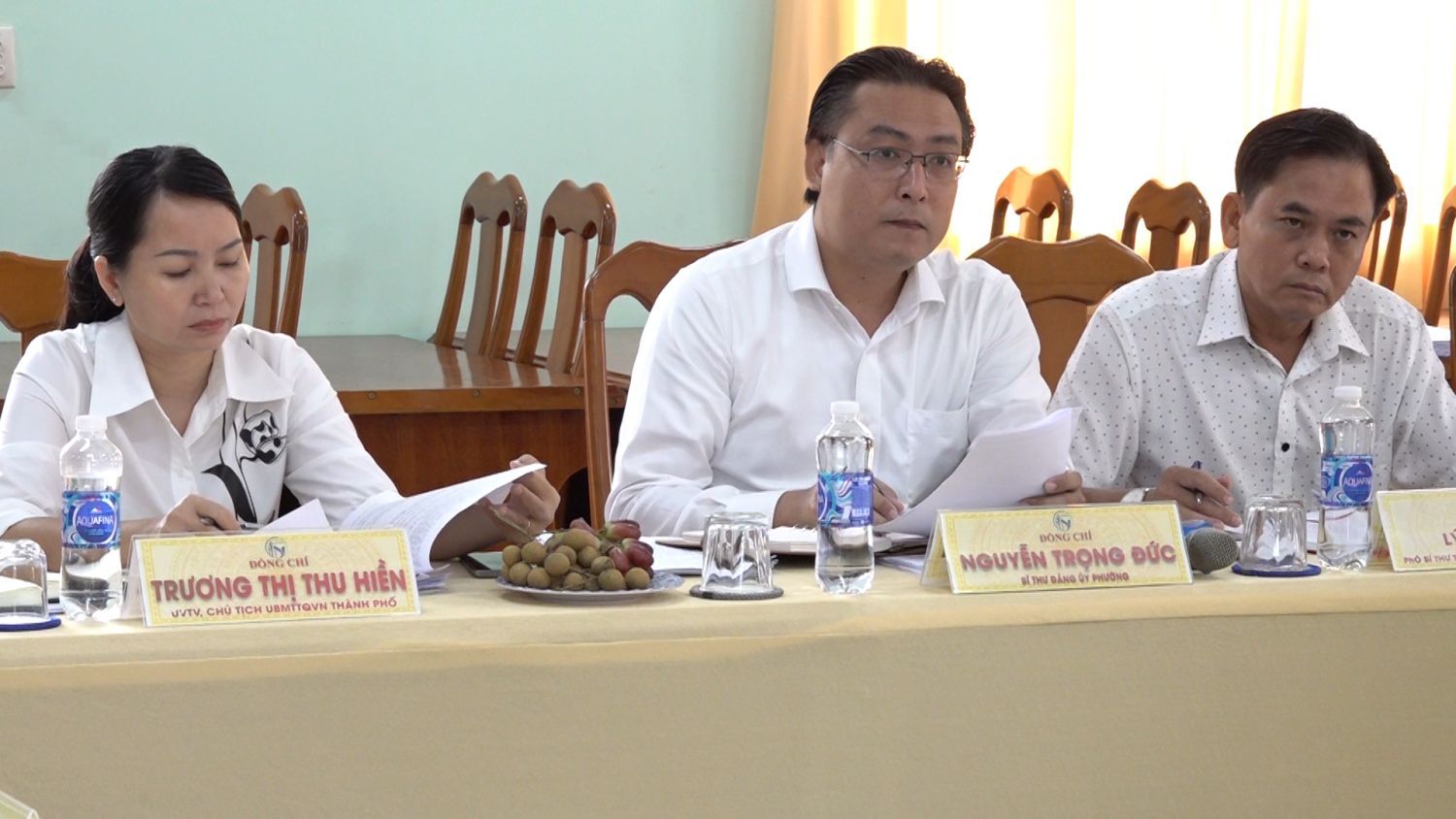 Phát biểu kết luận tại buổi làm việc, đồng chí Nguyễn Văn Đông ghi nhận và đánh giá cao sự chuẩn bị của địa phương trong công tác tổ chức Đại hội, đã thực hiện đúng các văn bản chỉ đạo tổ chức Đại hội của Trung ương, tỉnh và thành phố. Đồng chí Bí thư Thành ủy đề nghị Thường trực Đảng ủy cần nghiên cứu thêm các văn bản để triển khai thực hiện tránh thiếu xót, riêng những vấn đề chưa thấu đáo thì cần trao đổi, xin ý kiến cấp trên. Lưu ý nội dung văn kiện phải mang dấu ấn riêng của địa phương, nghiên cứu đưa vào những phần việc cần làm, phù hợp với tình hình thực tiễn, nhất là phương hướng, nội dung được triển khai cùng với giải pháp trong nhiệm kỳ tới. Riêng công tác nhân sự Đại hội cần đảm bảo đúng quy trình, rà soát, xem xét kỹ, chú ý đơn thư khiếu nại tố cáo, việc quy định điều kiện, tiêu chuẩn các nội dung để đảm bảo cơ cấu nhân sự mới. Đối với công tác chuẩn bị tổ chức Đại hội các chi bộ trực thuộc, Đảng ủy phường phải thực hiện đúng quy trình, quy định trong công tác tổ chức, cần tập trung tuyên truyền trước, trong và sau Đại hội, nhất là việc tuyên truyền trực quan sinh động.