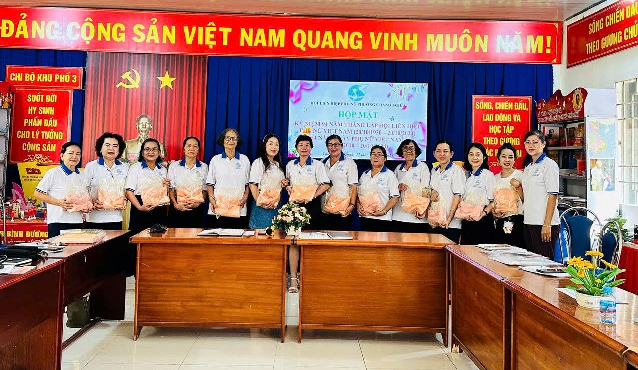 Sáng ngày 17/10/2024, Hội Liên hiệp Phụ nữ phường tổ chức họp mặt ôn lại kỷ niệm 94 năm thành lập Hội LHPN Việt Nam (20/10/1930 – 20/10/2024) và 14 năm ngày Phụ nữ Việt Nam (20/10/2010 – 20/10/2024). Nhằm động viên, khuyến khích tinh thần cho các chị ủy viên Ban Chấp hành hội đã trao tặng 15 phần quà cho các chị.