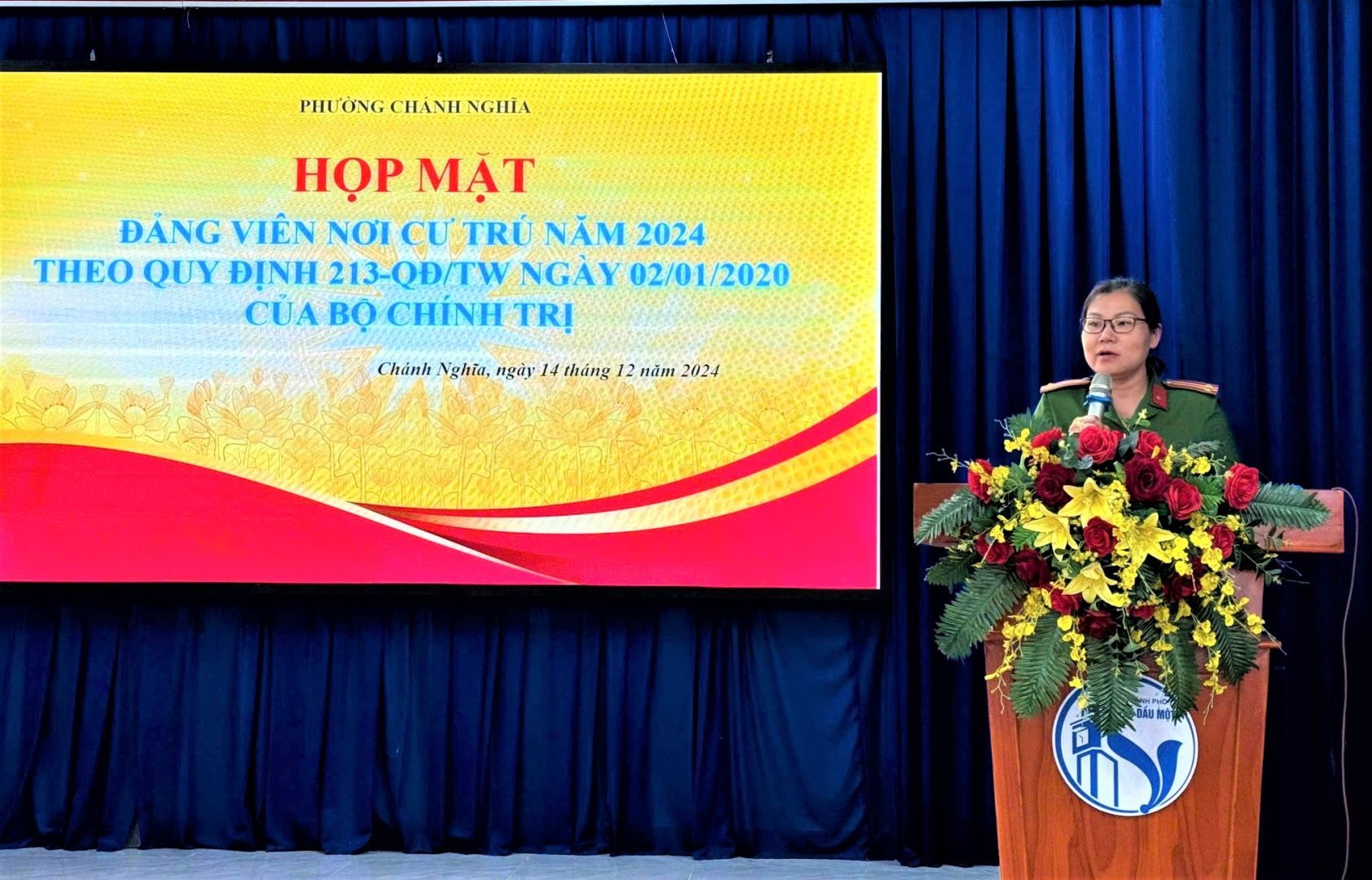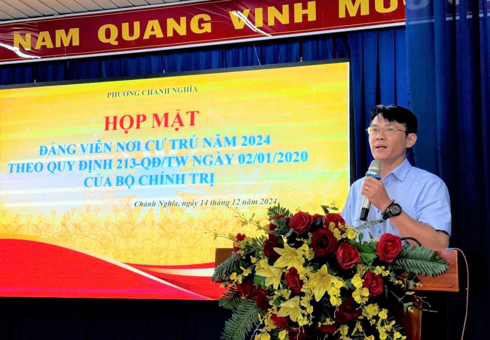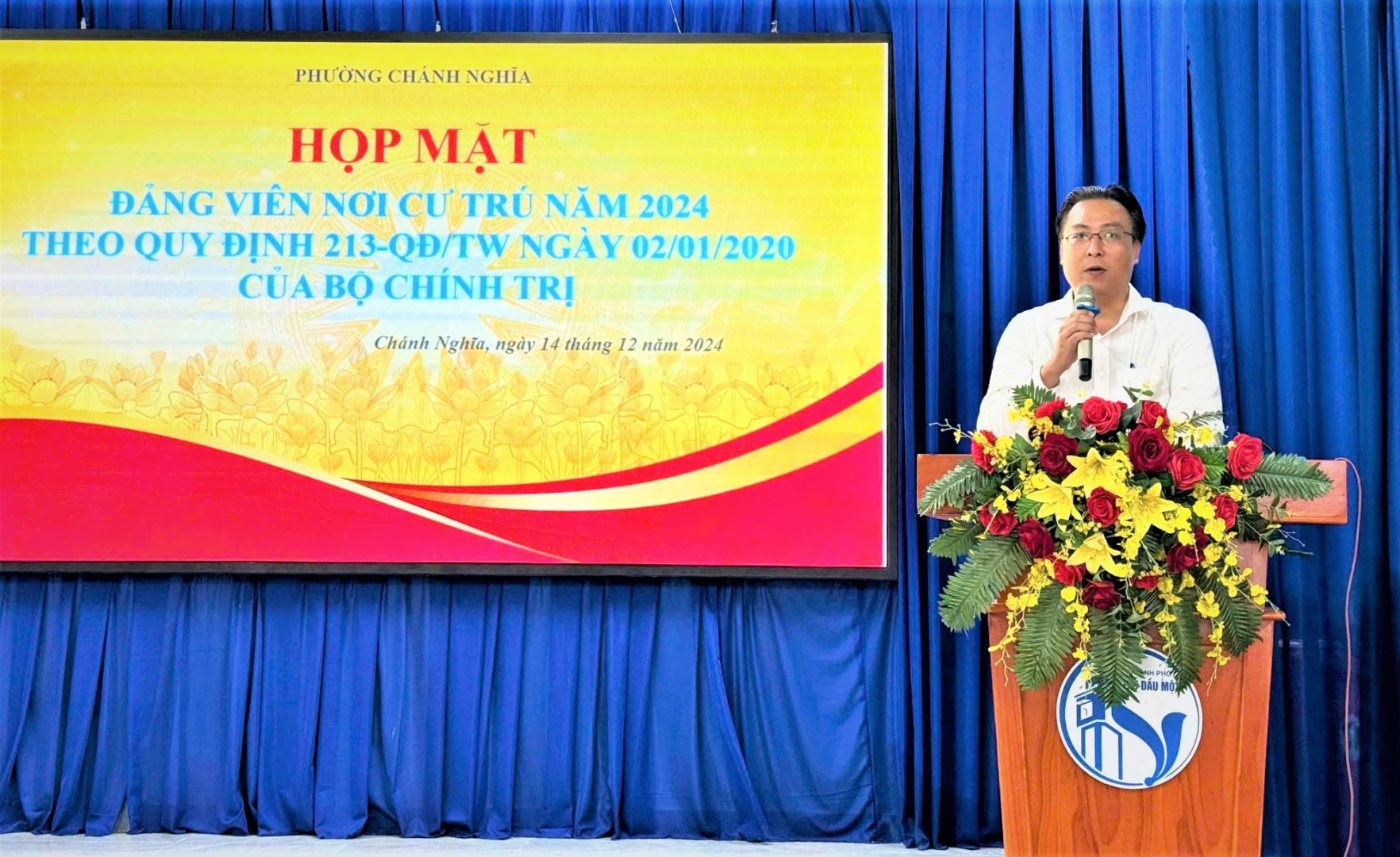 Phát biểu tại buổi họp mặt, đồng chí Nguyễn Trọng Đức đã ghi nhận và đánh giá cao những đóng góp của các đồng chí đảng viên đồng thời mong muốn các đồng chí tiếp tục phát huy tính tiên phong gương mẫu tại nơi cư trú tham gia đóng góp ý kiến, đề xuất giải pháp, hiến kế giúp cho phường có nhiều mô hình, cách làm hay, hiệu quả để giải quyết những vấn đề khó khăn tại địa phương; theo đó mỗi đảng viên nơi cư trú là một tuyên truyền viên vận động người thân gia đình, cộng đồng thực hiện tốt các chủ trương, chính sách của Đảng, Pháp luật của Nhà nước, các quy định của địa phương, tích cực tham gia các phong trào thi đua tại địa phương góp phần xây dựng Phường Chánh Nghĩa ngày một phát triển, giàu đẹp.