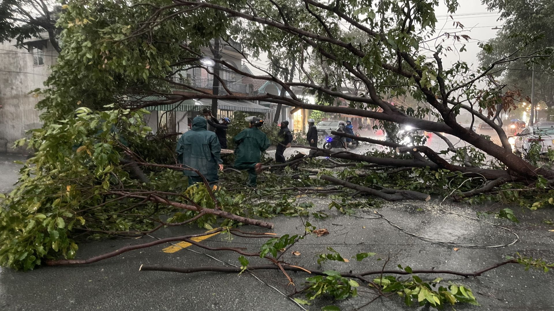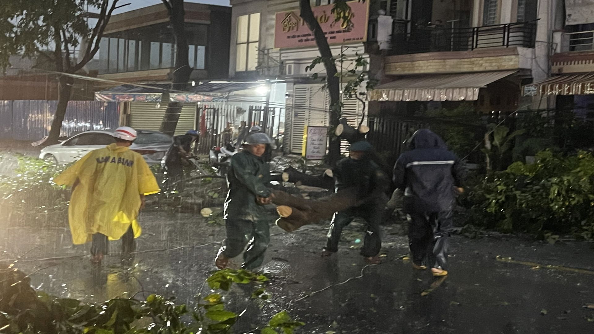 Lực lượng Dân quân phường nhanh chóng, kịp thời xử lý cây gãy, đổ do mưa, giông