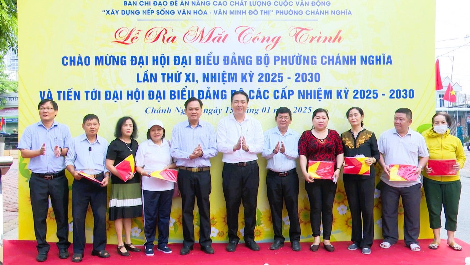 Nhằm lập thành tích chào mừng Đại hội Đại biểu Đảng bộ phường Chánh Nghĩa lần thứ XI, nhiệm kỳ 2025 - 2030 và tiến tới Đại hội đại biểu Đảng bộ các cấp nhiệm kỳ 2025 - 2030 và tiếp tục thực hiện tốt Đề án nâng cao chất lượng cuộc vận động “Xây dựng nếp sống văn hóa – văn minh đô thị” trên địa bàn phường Chánh Nghĩa; Sáng ngày 15/01, phường Chánh Nghĩa tổ chức ra mắt các công trình chào mừng Đại hội đảng bộ các cấp.