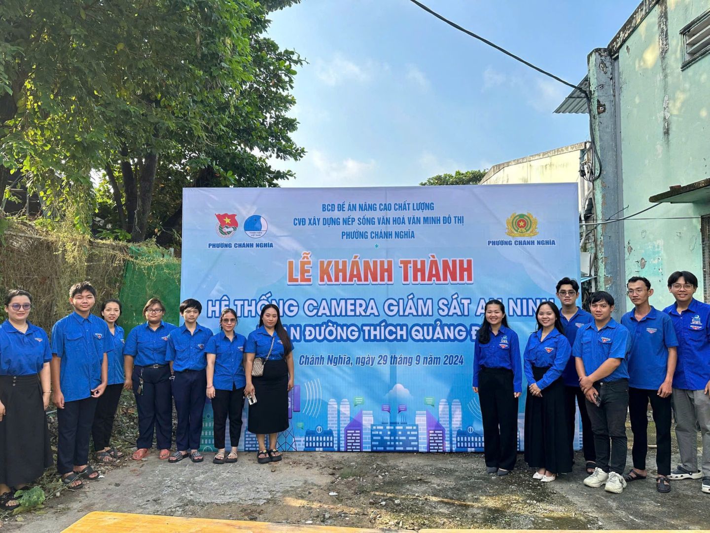 Sáng ngày 29/9/2024, Ban chỉ đạo Đề án Nâng cao chất lượng cuộc vận động xây dựng “Nếp sống văn hoá - Văn minh đô thị” phường Chánh Nghĩa tổ chức lễ ra mắt công trình “Tuyến đường camera an ninh” giám sát an ninh trật tự, vệ sinh môi trường. Đến tham dự có đồng chí Lý Văn Minh - PBT thường trực Đảng uỷ - Phó Trưởng ban chỉ đạo; đồng chí Vương Chí Cường - Chủ tịch UBND phường Chánh Nghĩa cùng lãnh đạo địa phương và hơn 30 đoàn viên thanh niên.