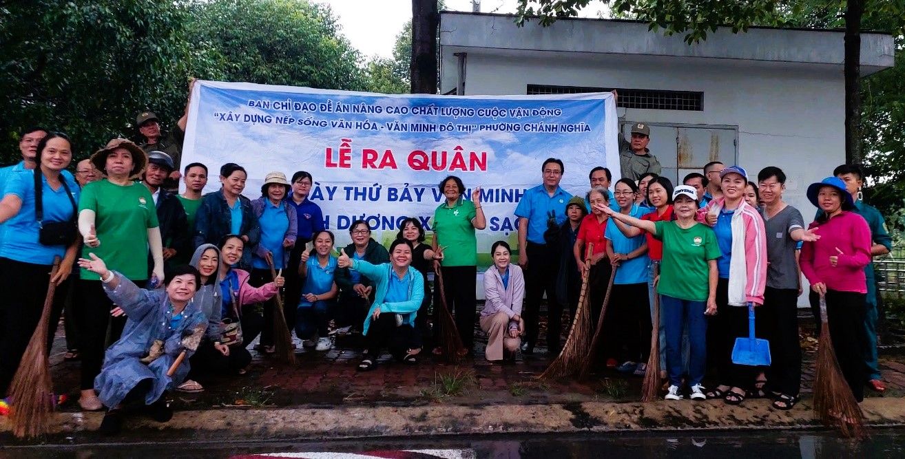 Sáng ngày 27/10, Ban Chỉ đạo Đề án nâng cao chất lượng Cuộc vận động “Xây dựng nếp sống văn hóa - văn minh đô thị” phường Chánh Nghĩa tổ chức ra quân dân vận. Tham dự có ông Nguyễn Trọng Đức – Bí thư Đảng ủy phường, ông Lý Văn Minh – Phó Bí thư Thường trực Đảng ủy – Trưởng Khối vận, ông Vương Chí Cường – Chủ tịch UBND phường cùng 120 cán bộ công chức, đoàn viên, hội viên các ban, ngành, đoàn thể và nhân dân trên địa bàn phường.